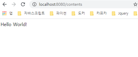 localhost:8080/contents로 접속하면 Hello World! 텍스트를 표시할 겁니다.